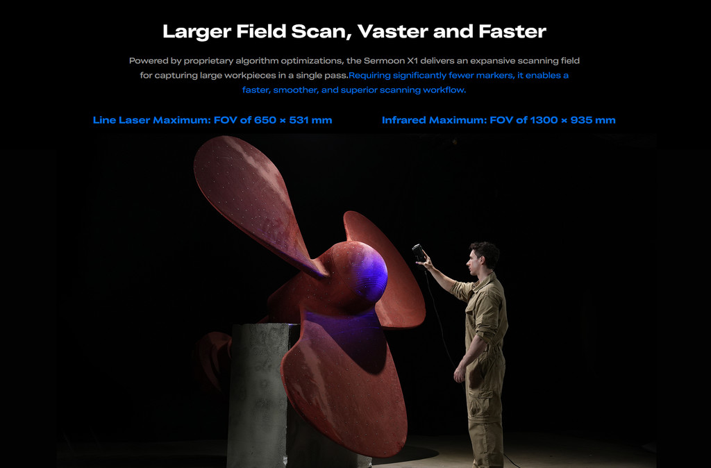 • Optimized algorithms deliver a 650 × 531 mm FOV (Blue Laser) and 1300 × 935 mm FOV (NIR), reducing markers by 17%.