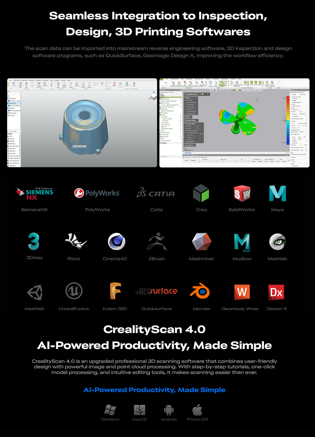 • Intuitive, AI-powered software with step-by-step workflows, auto alignment, and model editing tools.