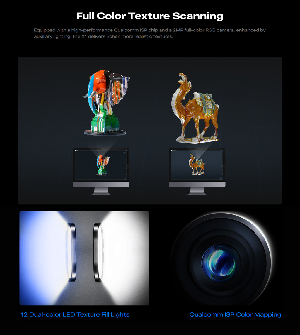• Features a 2 MP RGB camera and 12 dual-color LED fill lights driven by a Qualcomm ISP chip.