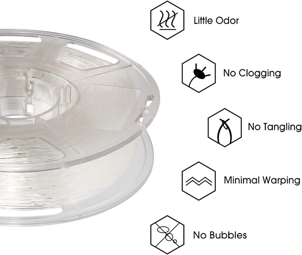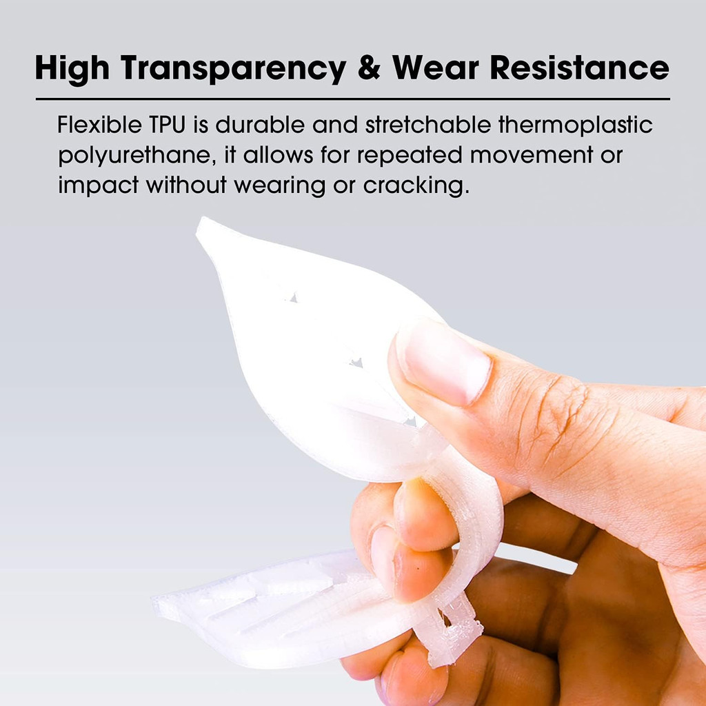 • This TPU filament provides a slightly transparent appearance with a clean, glossy surface. Perfect for projects that need a premium, flexible finish such as phone cases, sports gear, or product prototypes.