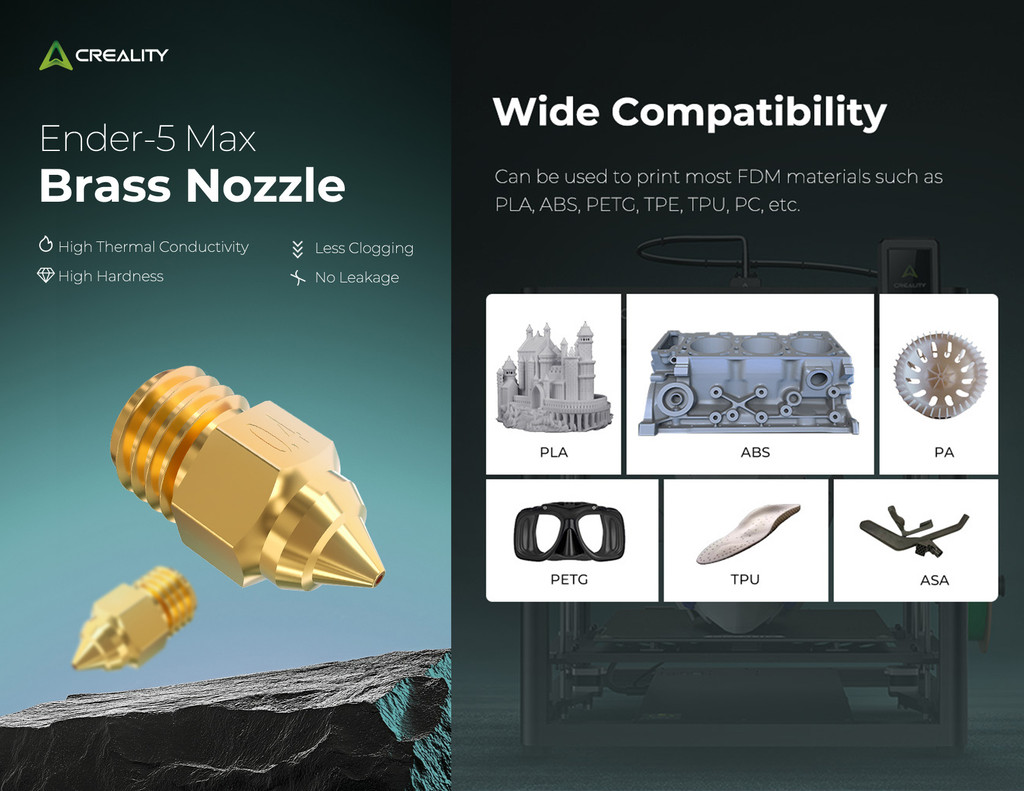 The Creality Ender 5 Max Nozzle is designed for high-precision extrusion, ensuring consistent filament flow and smooth surface finishes. With durable brass construction and multiple size options, it’s perfect for both detail-oriented prints and high-speed production.