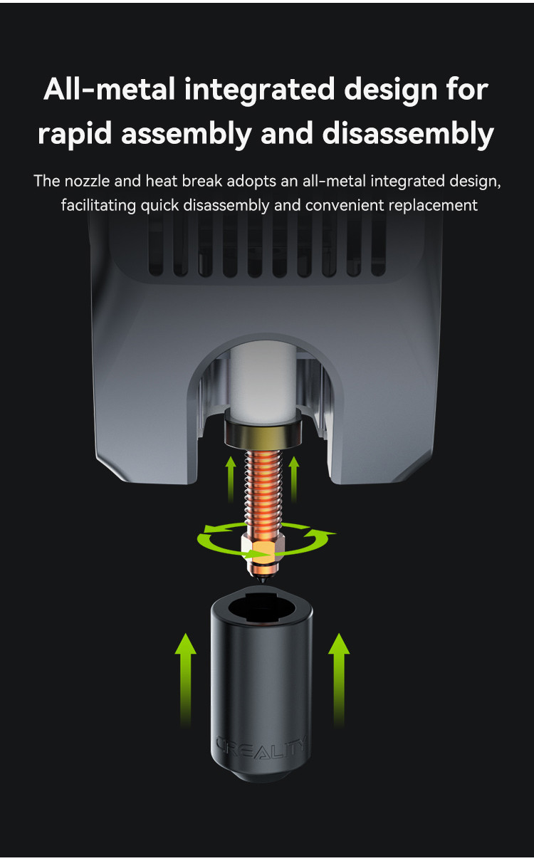 ๐ All-metal integrated design enables quick disassembly and replacement of the nozzle and heat break.