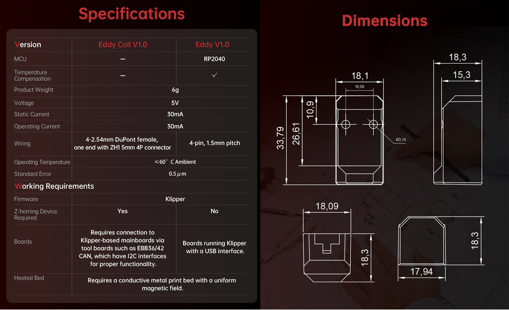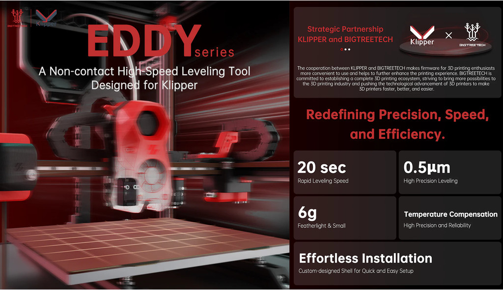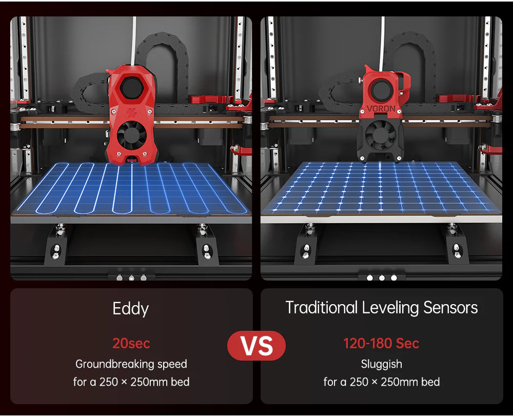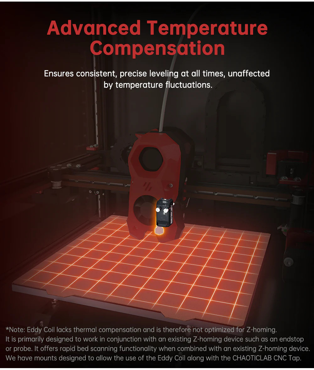 • Level your print bed in just 20 seconds! Eddy Coil detects microscopic bed defects and automatically adjusts for a perfectly even surface.