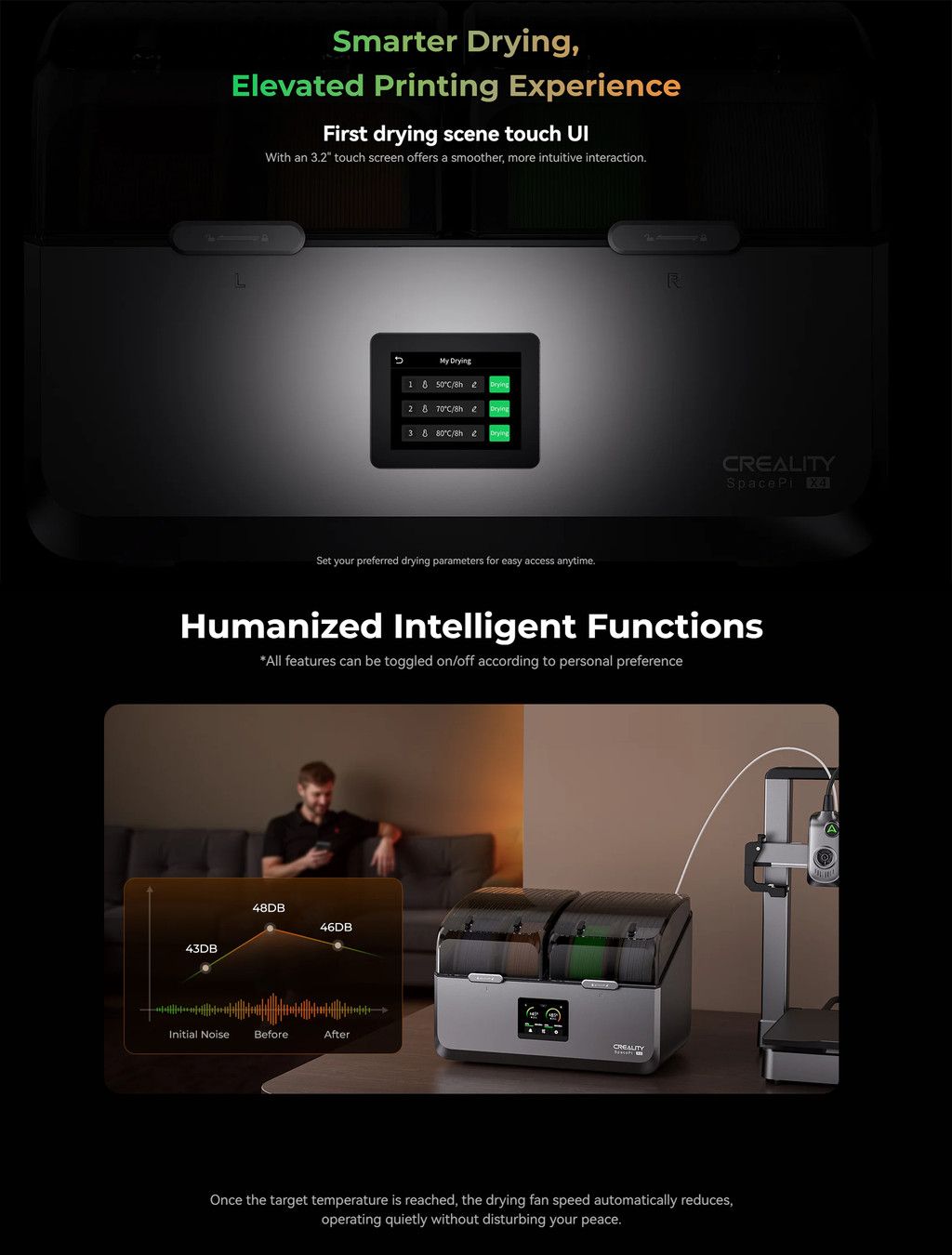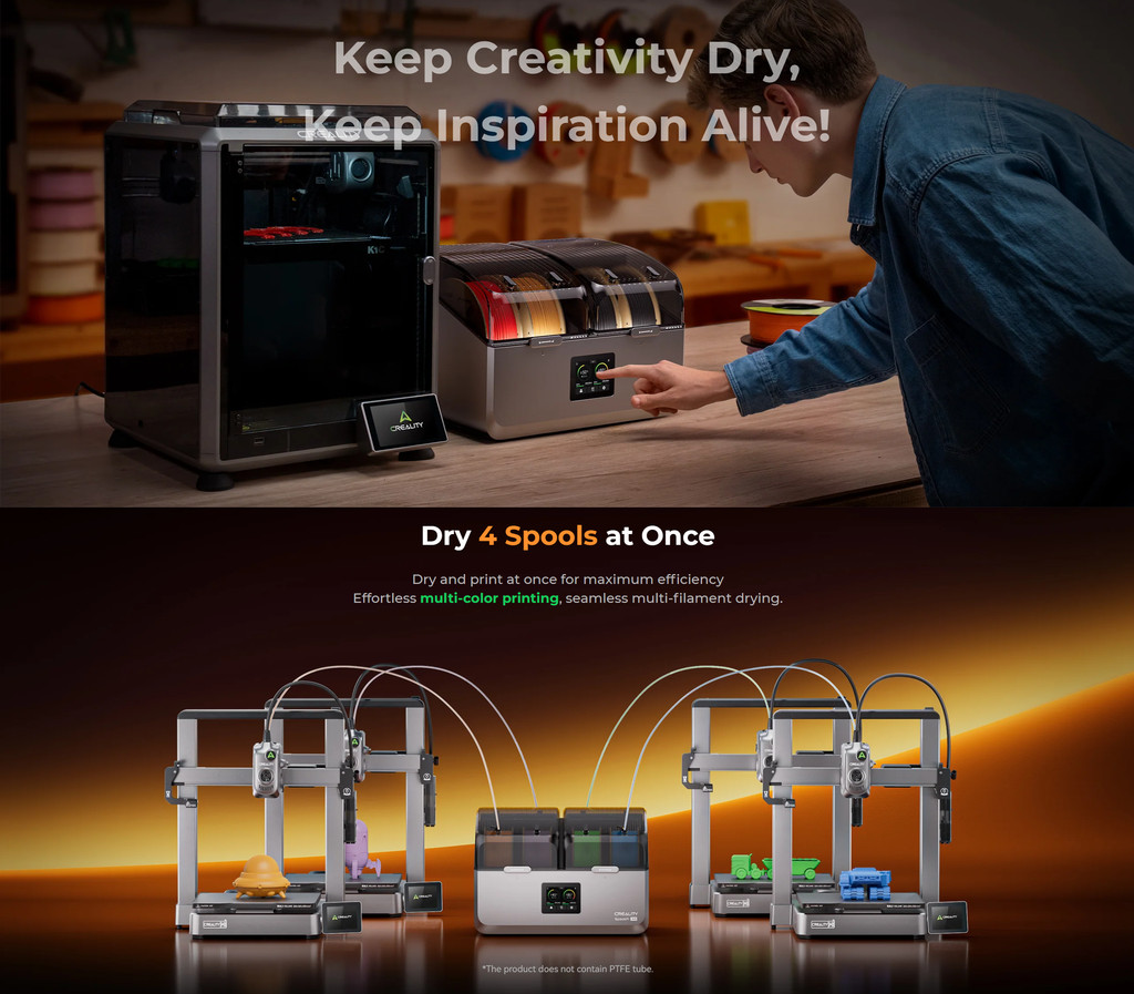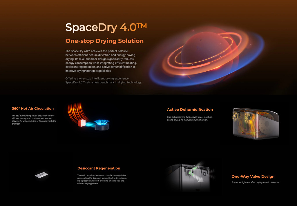• Max drying temp of 85°C — suitable for engineering-grade filaments