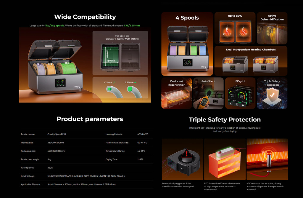 • Compatible with 1kg & 2kg spools (up to 200mm diameter, 150mm width) - 🔥 High-Temp Dual-Chamber Heating